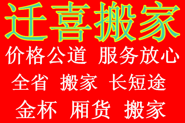 迁喜搬家专业提供 家庭搬家,学生搬家,店铺搬家,商场搬家,学校搬家,个人搬家,企事业搬迁,单位搬家,工厂搬家,仓库搬迁,医院搬运器材,专业长途搬家,专业钢琴搬运,货物配送等业务。
